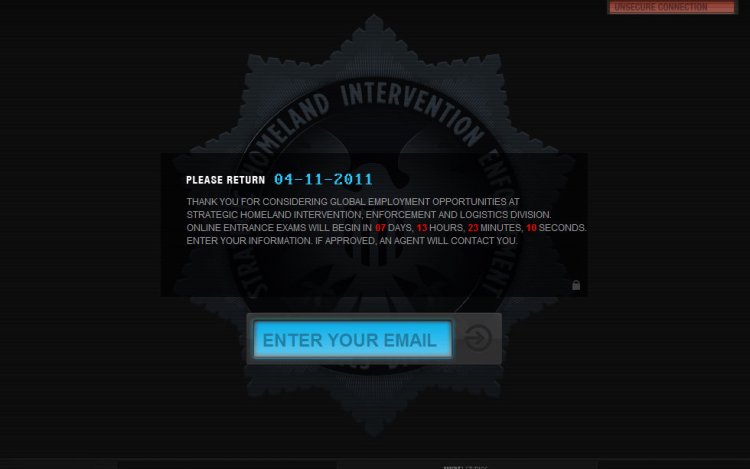 I went online to JoinSHIELD.com. The single page on the site thanked me for “considering global employment opportunities at Strategic Homeland Intervention, Enforcement and Logistics Division” and asked for my email address. I obediently entered it.