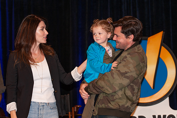 Closing out Saturday’s programming sessions, the Firefly Q&A panel included actors Adam Baldwin, Jewel Staite, and Sean Maher. When asked about what might have happened to their characters if the series had continued, Staite and Maher both thought babies would have been in the future for Kaylee and Simon. As if to complete the picture, at the end of the session, a child from the audience came up on stage and was embraced by the pair.