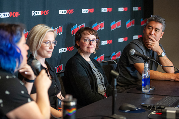 Whether it was due to the strike or a change in focus for NYCC, a significant number of celebrity headliners did not appear in panel or interview sessions and were available only for fee-based autograph signings and photo ops. While Chris Evans appeared on stage in a spotlight panel, fellow Avenger Tom Hiddleston was only listed for fee-based autographs and photos. And so it was with many of the media guests.