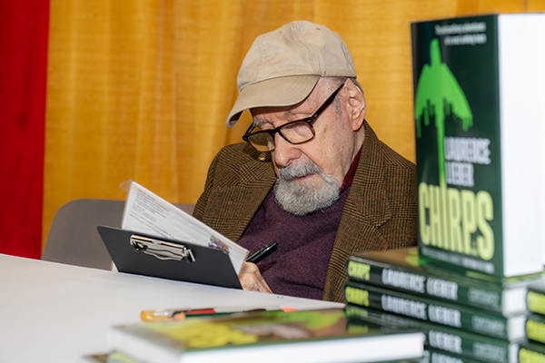 Now, at 93 years of age, Lieber has written his first prose novel, Chirps, the story of a genetically enhanced bird of the same name. For two hours, he signed copies of the book and comic books to a long line of fans.