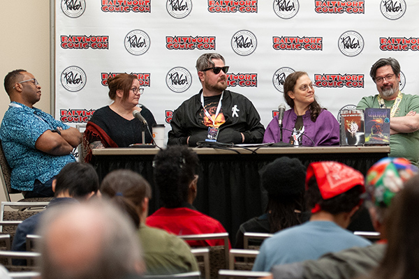 “Happy Hour with the Comic Book Couples,” a perennial highlight of Baltimore Comic-Con, brings together couples in a hilarious roundtable talk. This year’s panel included Billy and Deborah Tucci, Walt and Louise Simonson, Joe and Hilarie Staton, and Michael Conrad and Becky Cloonan.